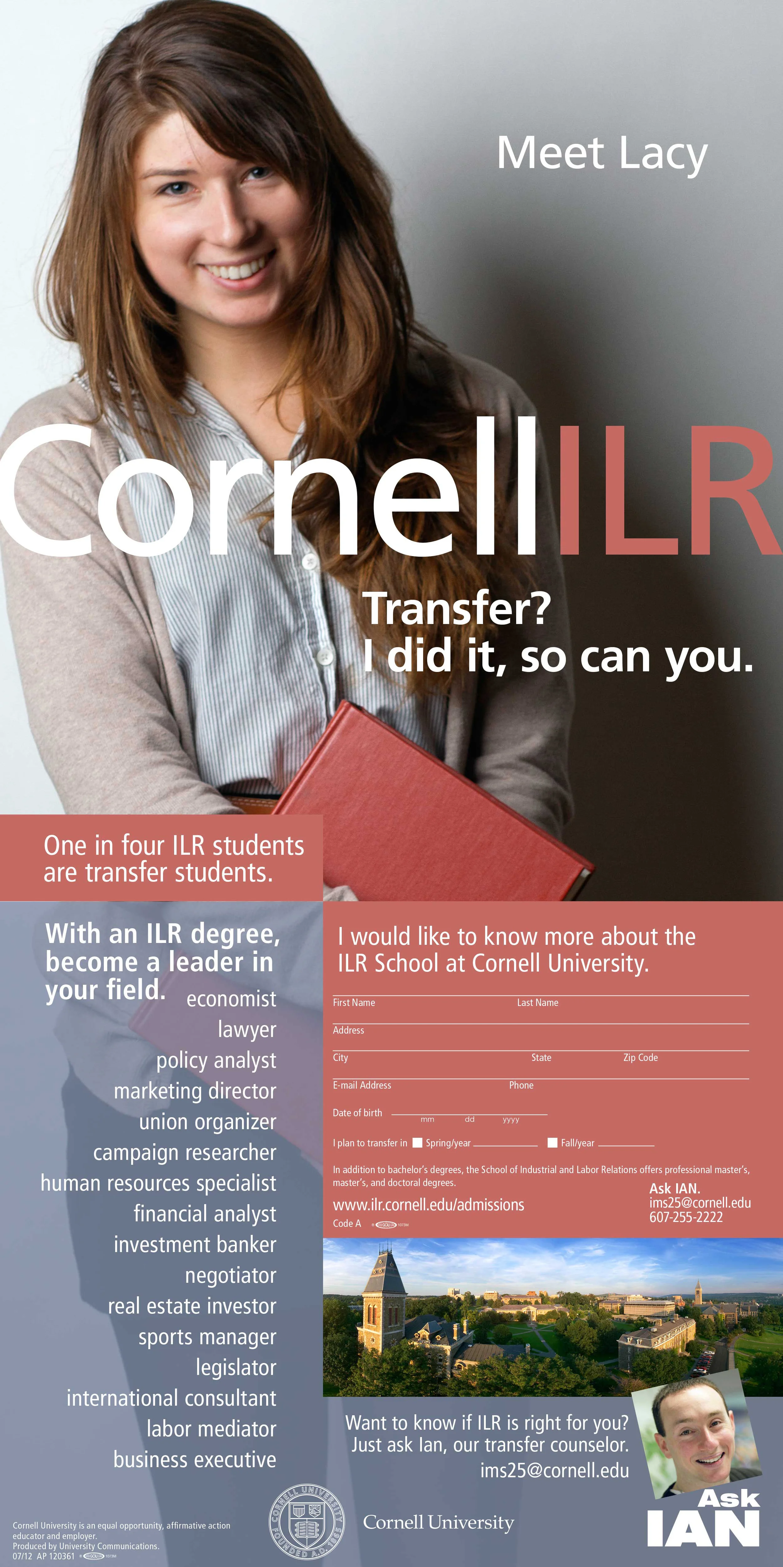 · Choose bold, honest images to accompany student profiles and illustrate the breadth and depth of a flexible major. Faculty bios and alumni testimonials define the possibilities and the value of an ILR education.